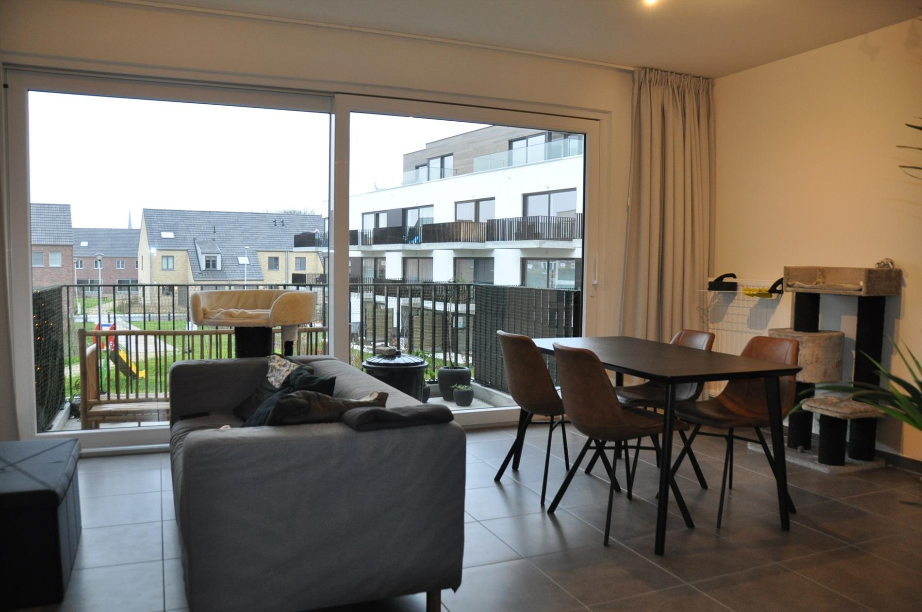 Dit prachtige nieuwbouwappartement maakt deel uit van het Kouterpark en is gelegen in een groene omgeving die rust uitstraalt. Bovendien is het appartement instapklaar (geschilderd en voorzien van verlichtingsarmartuur). Vlakbij is supermarkt Spar gelegen dus uw dagelijkse benodigdheden liggen binnen handbereik. Indeling: inkom, toilet, 2 slaapkamers, badkamer (met inloopdouche), modern ingerichte keuken met berging en leefruimte, en een zuidgericht terras. Aan parkeermogelijkheden geen gebrek want er is een ondergrondse private parking voorzien.