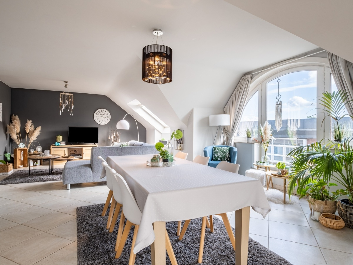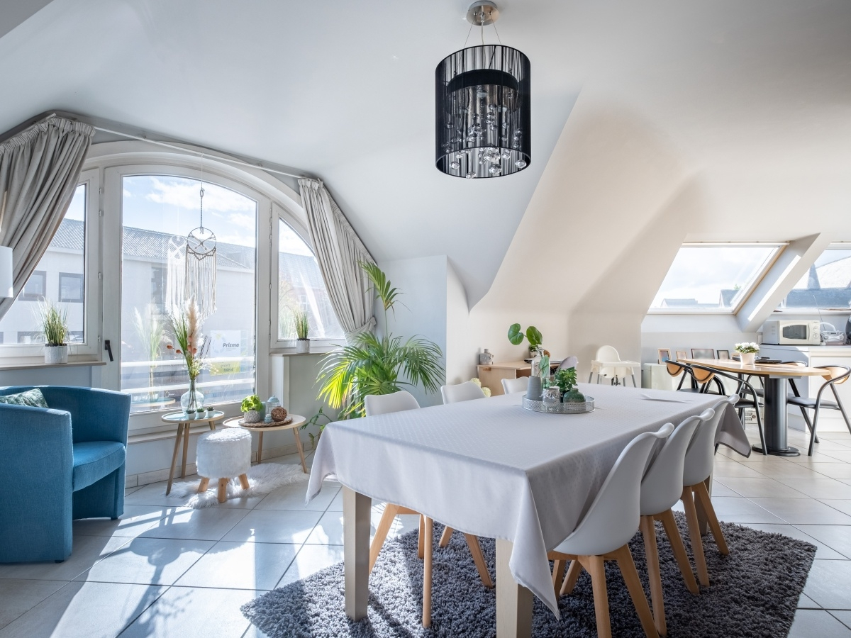 * ruime en lichtrijke living met eethoek en eetplaats