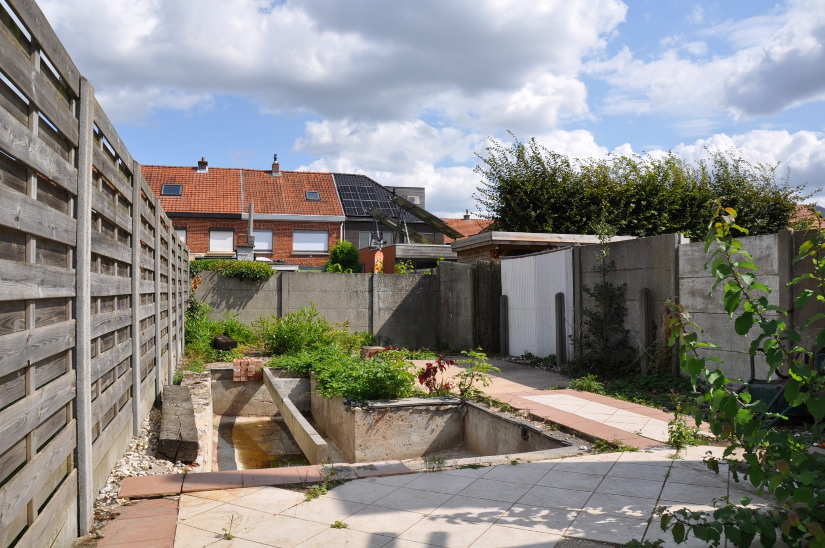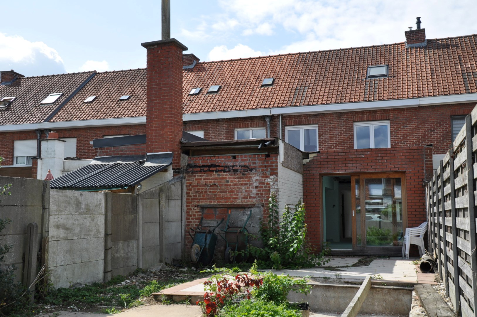 Gedeeltelijk gerenoveerde woning met twee slaapkamers en tuin.